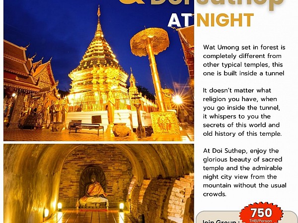 π At Doi Suthep, enjoy the glorious beauty of sacred temple and the admirable night city view from the mountain without the usual crowds.